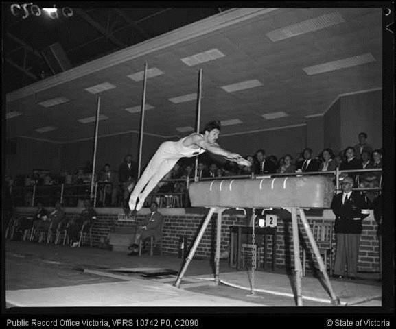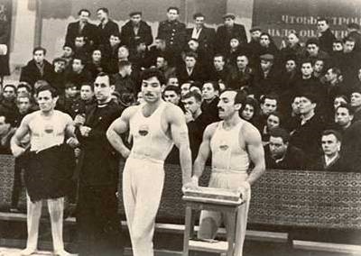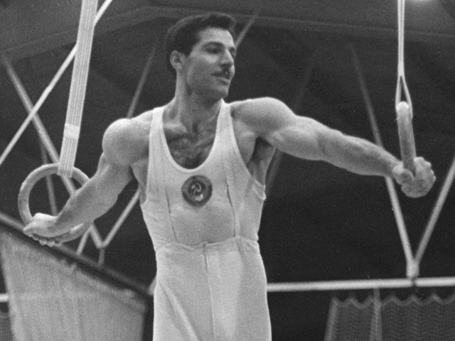 Ironically, politics led inevitably to one of Azaryan’s two original skills. At the 1953 USSR Championships, the Armenian’s sensed that they were being underscored. When the Armenian coach asked the judges, who were Russian, about his team’s low score on rings, he was told that his gymnasts were not holding their crosses for a full 3 seconds. Last up for his team on rings, an angry Azaryan had seen enough.